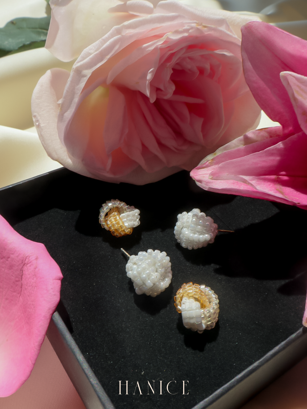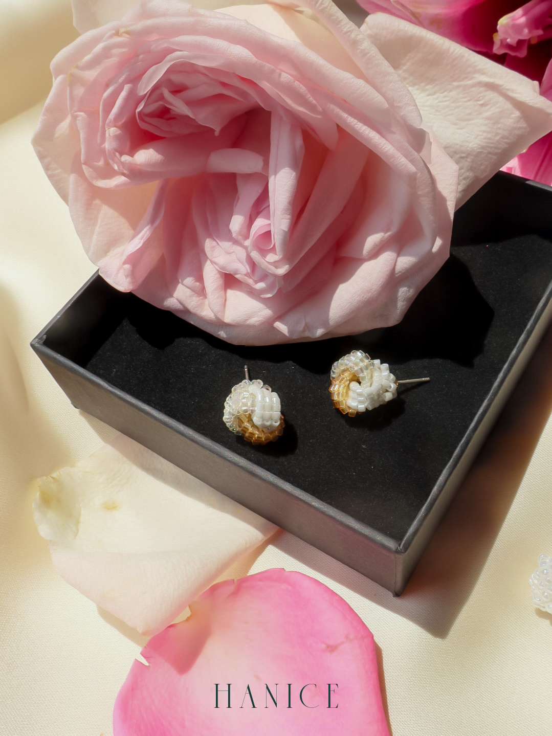 Ivorose are delicately handcrafted earrings made from authentic Japanese Miyuki beads. Inspired by the gentle twist of rose petals, they bring elegance and youthfulness. The studs are made with sterling silver posts, safe and hypoallergenic, ensuring comfort for everyday wear.