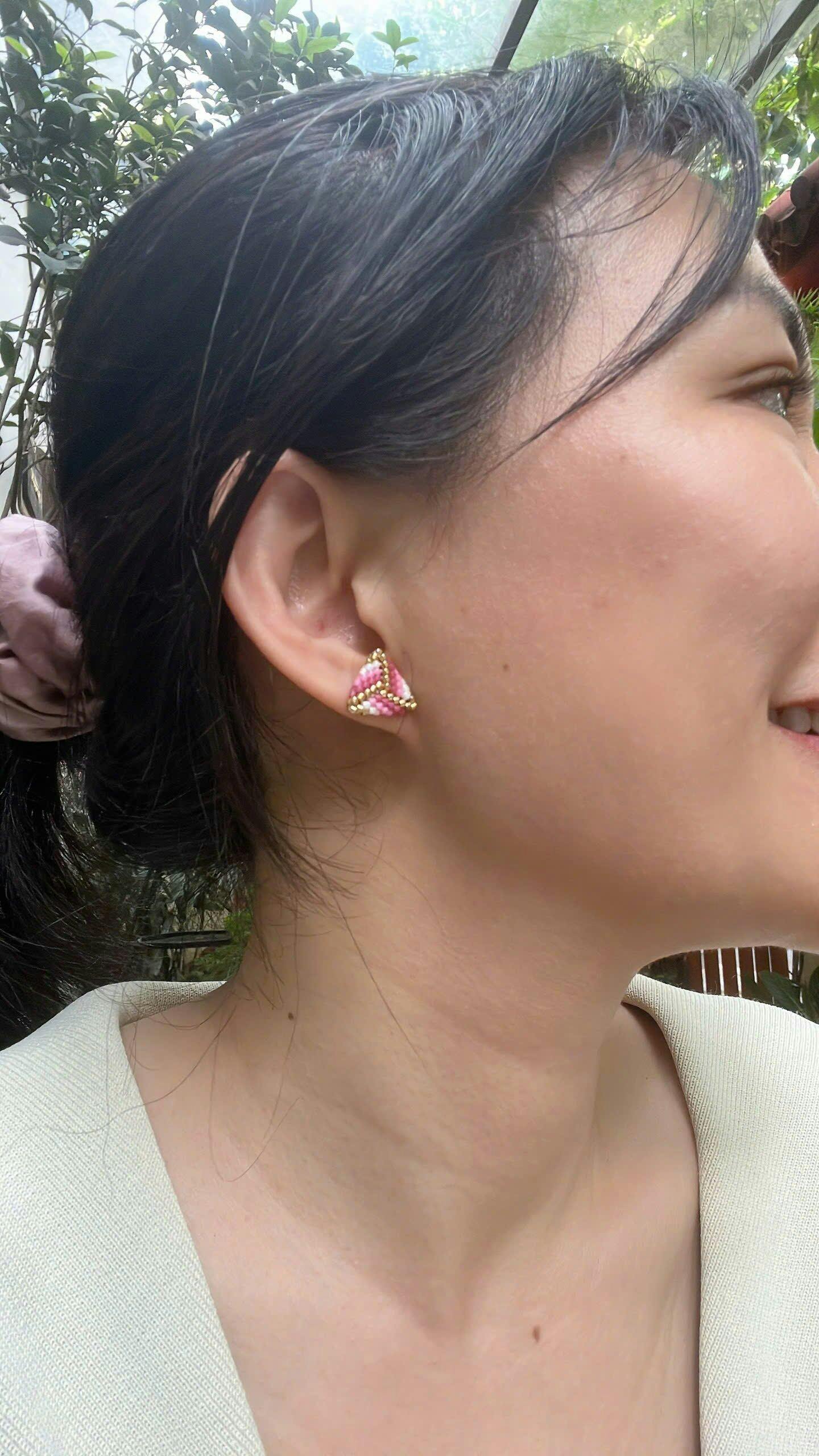 The Mini Mosaic Studs are handcrafted with premium Miyuki beads, forming delicate geometric patterns inspired by mosaic art. Designed as stud earrings, they sit gracefully on the earlobe—petite, lightweight, yet full of character. Versatile and elegant, they complement white, pastel, or dark outfits with ease. Whether for daily wear or special occasions, these earrings add a refined touch of craftsmanship and timeless charm to your style.